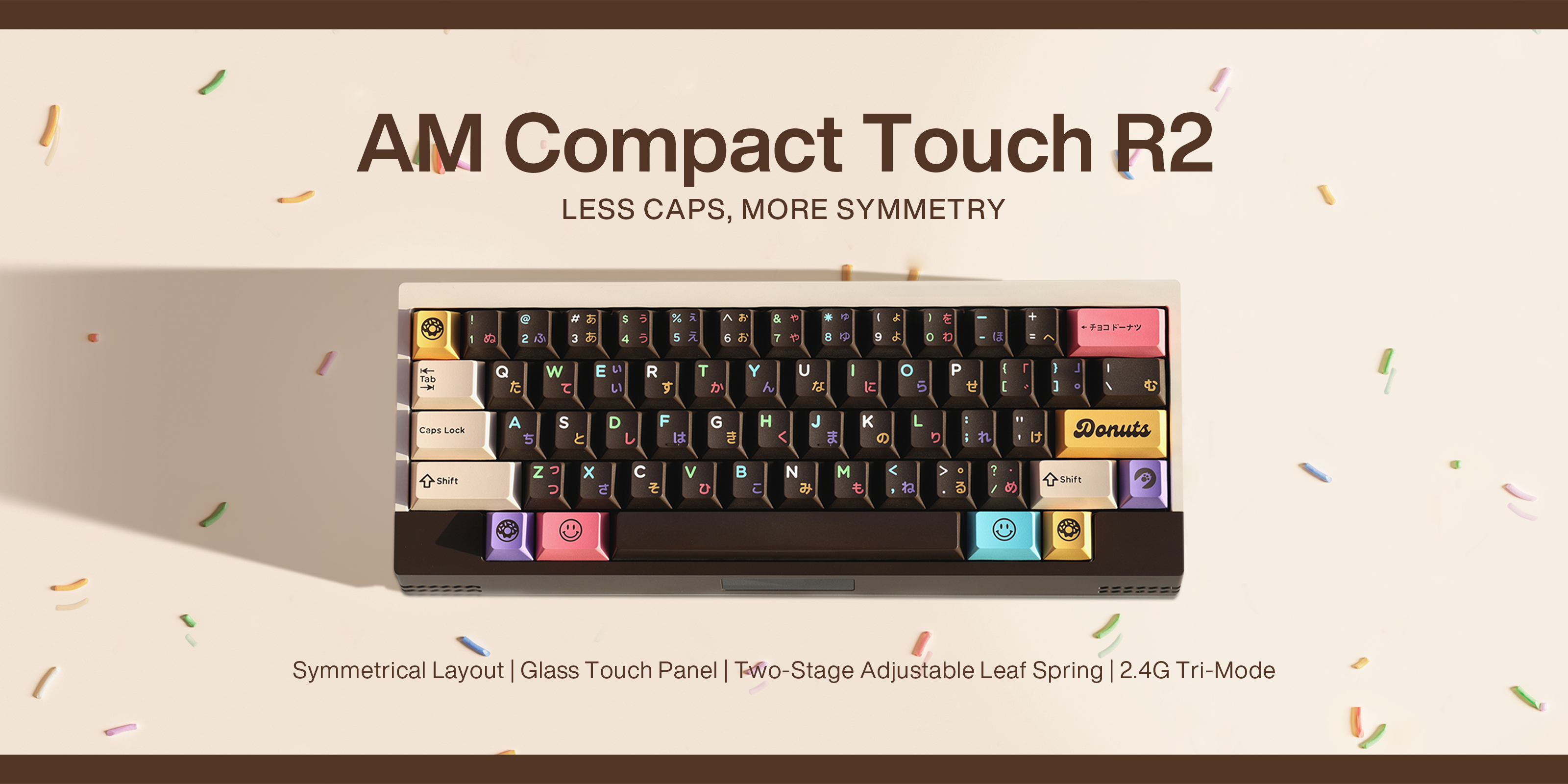 AM Compact Touch R2 uses a touch panel to replace the arrow keys, allowing for a more compact symmetrical layout that's perfect to show off your keycaps.