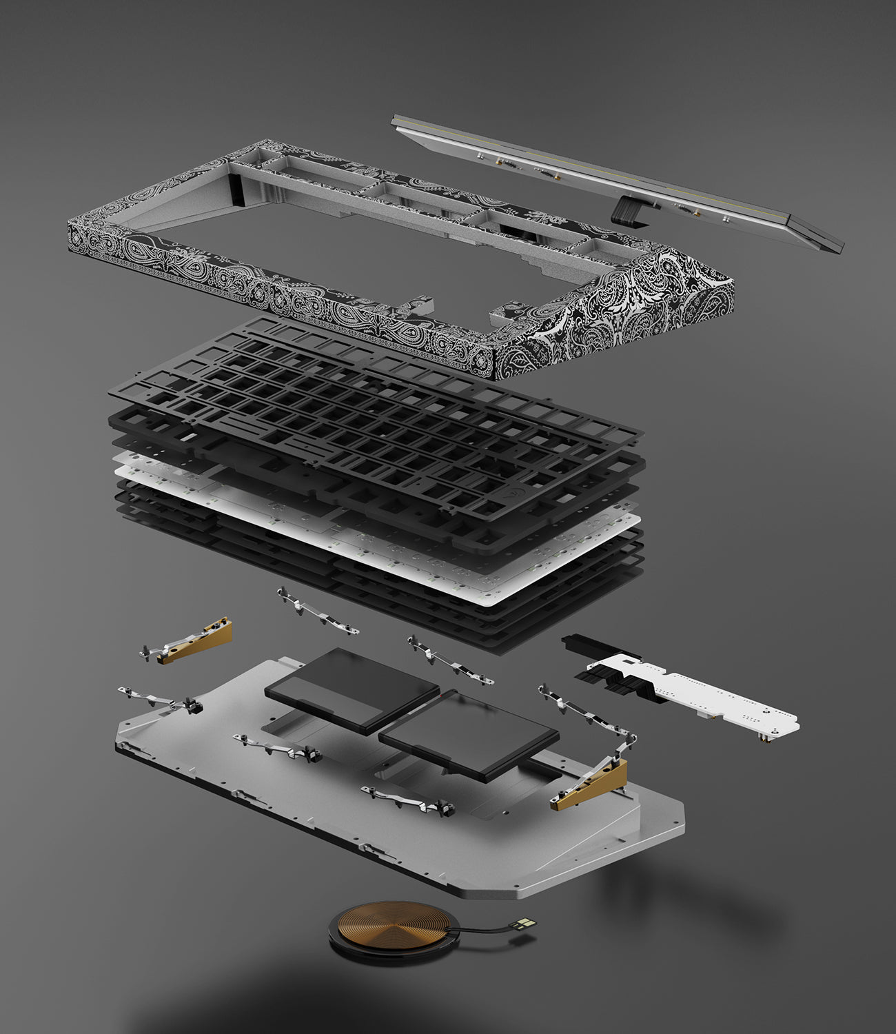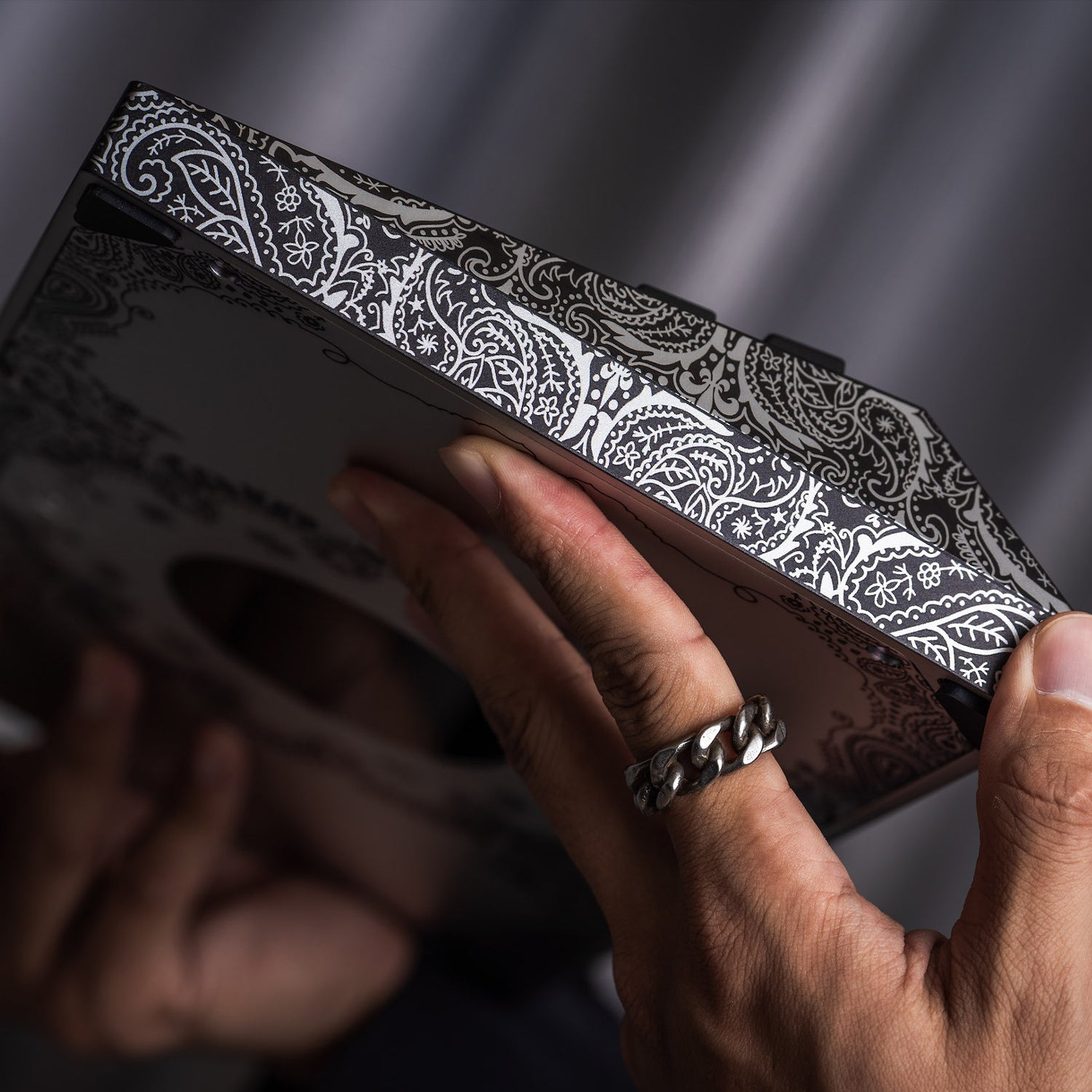 By the use of multi-color anodizing, we applied the silver pattern on top of the black background color, bringing the paisley pattern to CYBERBOARD. Each pattern is carefully designed using multi-color anodizing, allowing the paisley pattern to bloom on CYBERBOARD's keyboard body. And best of all, it will never fade.
