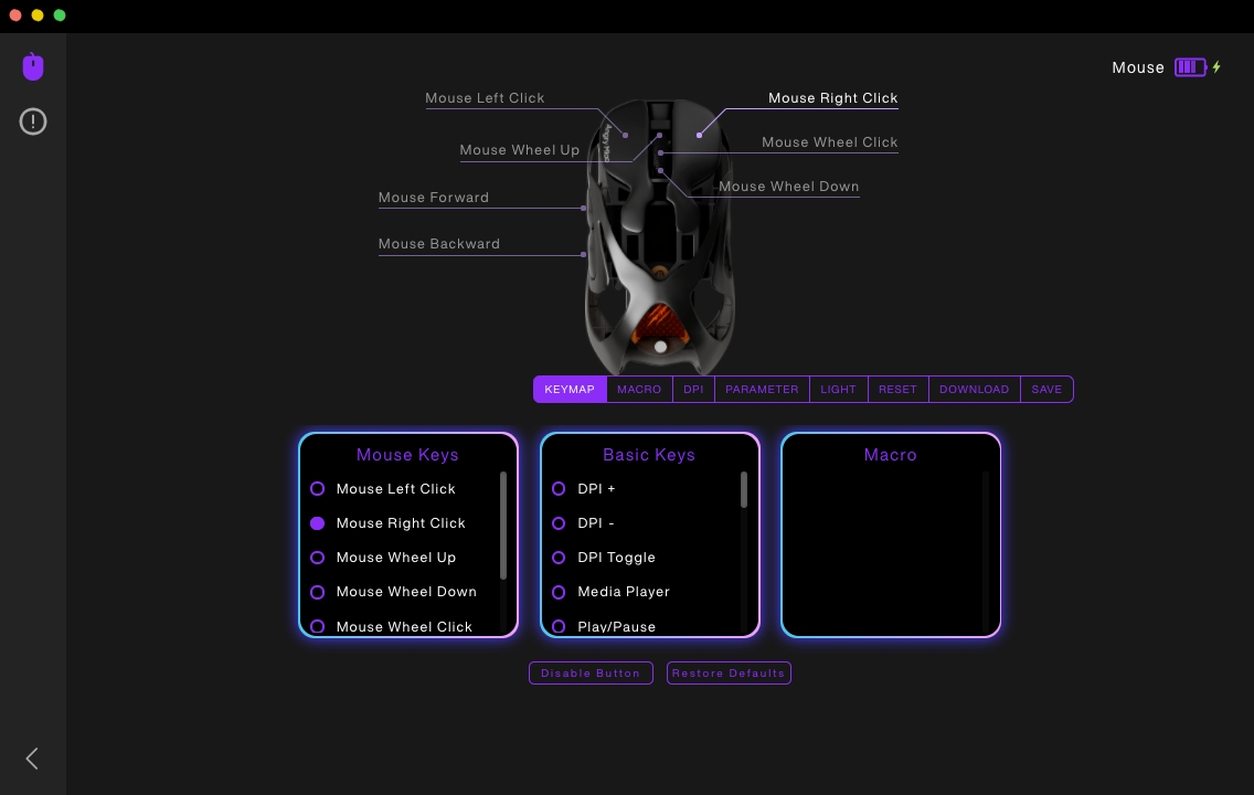 Quickly adjust common settings like DPI, key assignments, and polling rate.