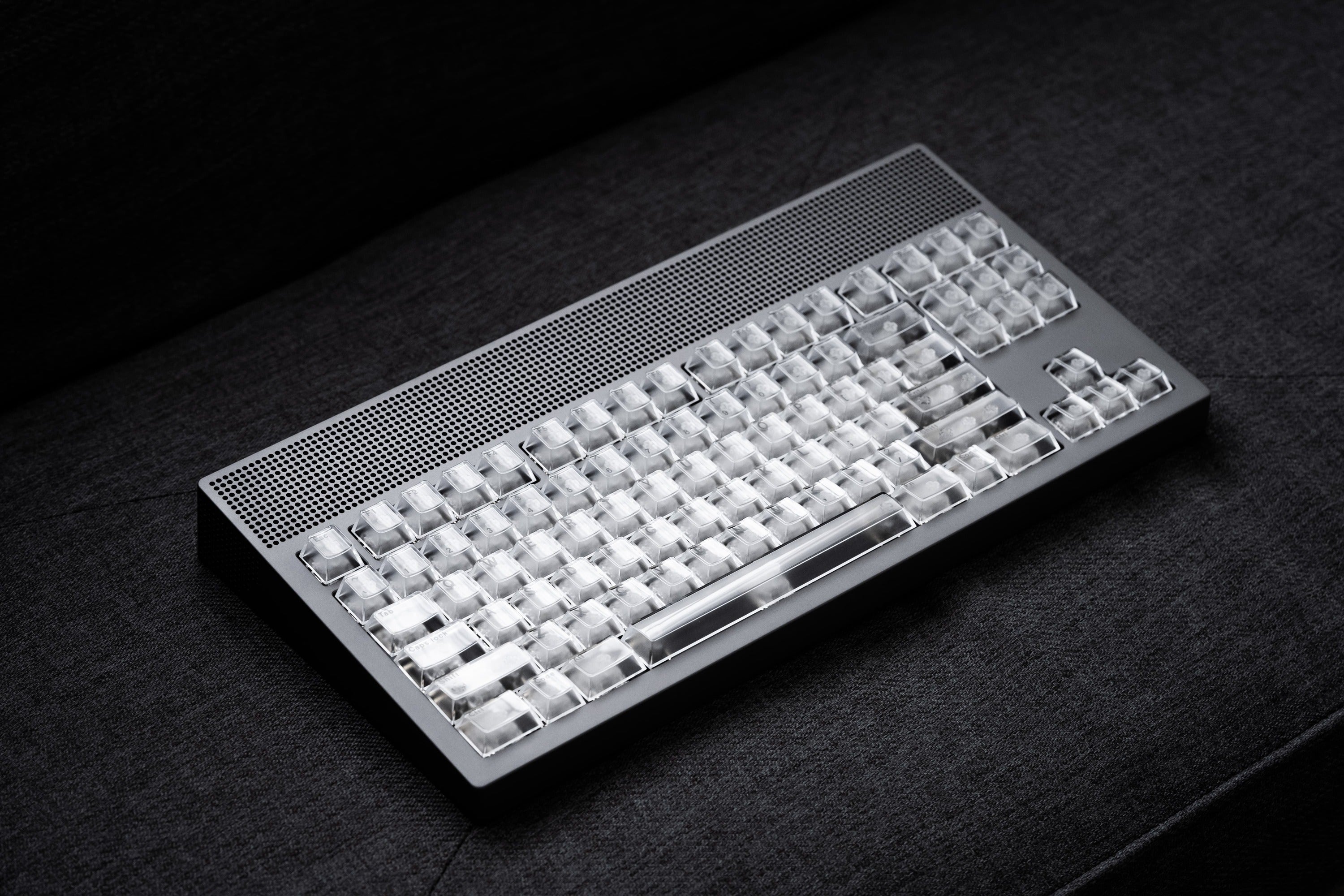 Custom internals, refined through five generations of iteration, are paired with Ice Silver Pro V2 switches for an exceptional typing experience.