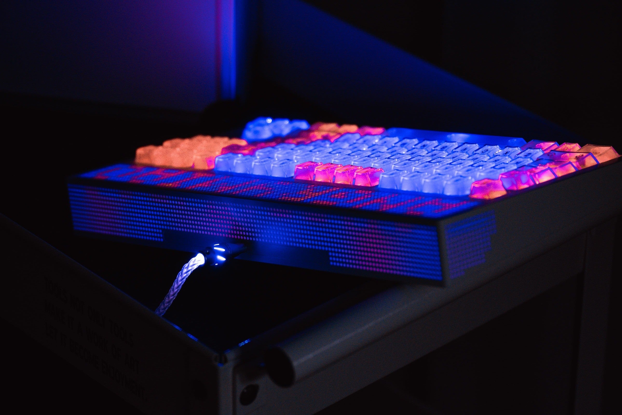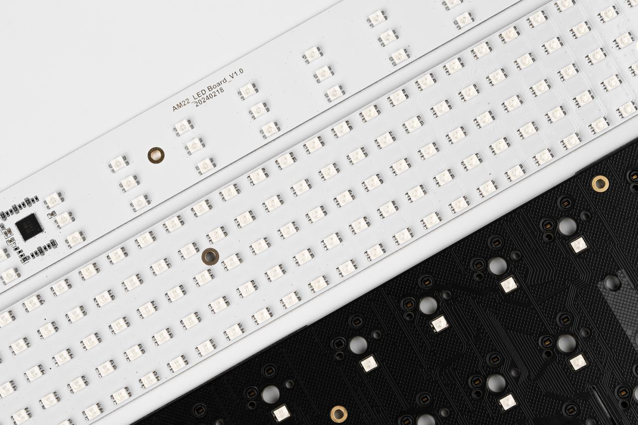 We’ve integrated 389 LEDs into the board — 270 on the front, 70 on the three sides, and 89 in-switch LEDs.