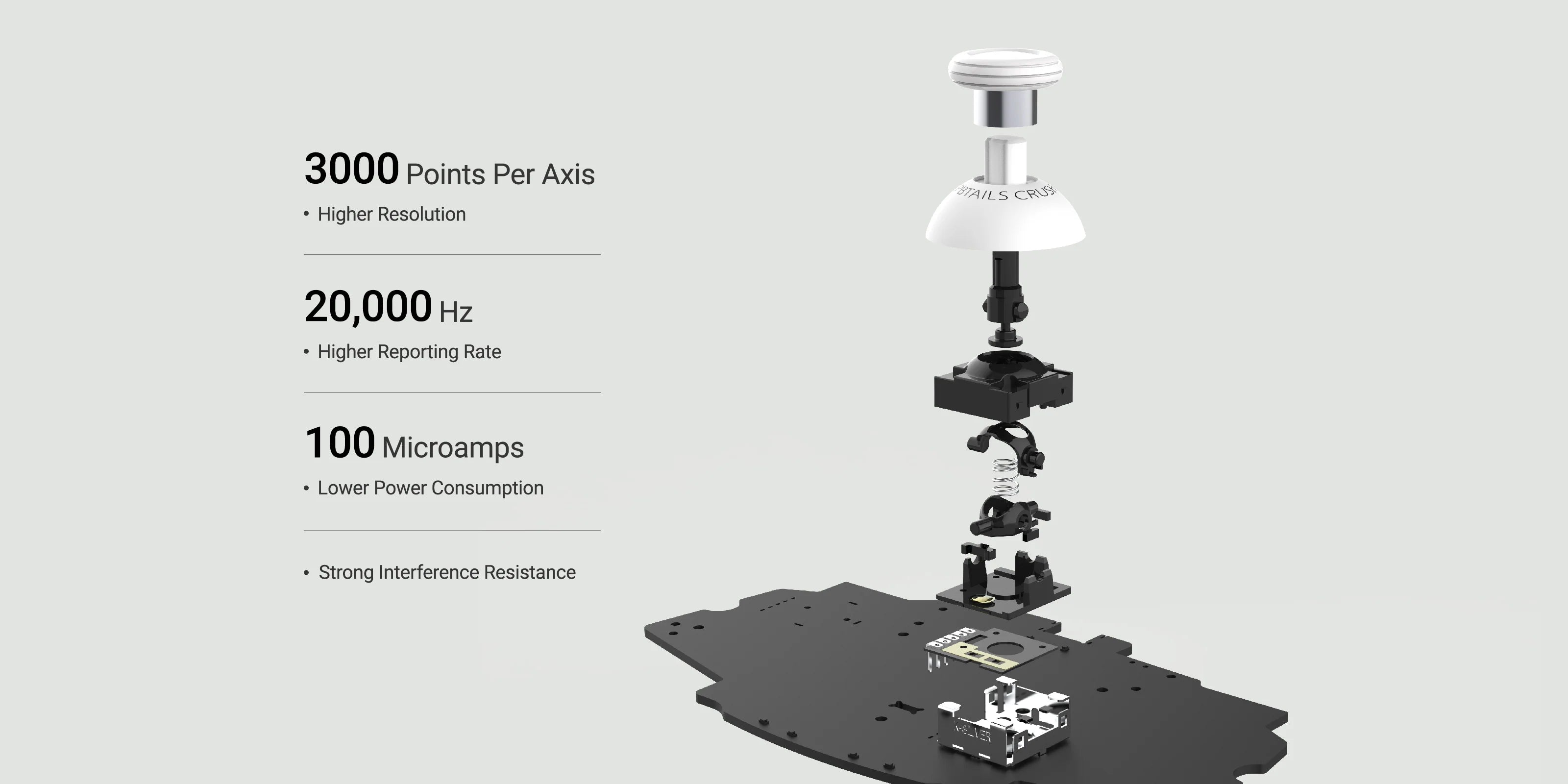 The K-Silver® TMR Joystick offers enhanced precision and responsiveness, utilizing TMR technology for smoother control and greater durability compared to traditional Hall Effect sticks.
