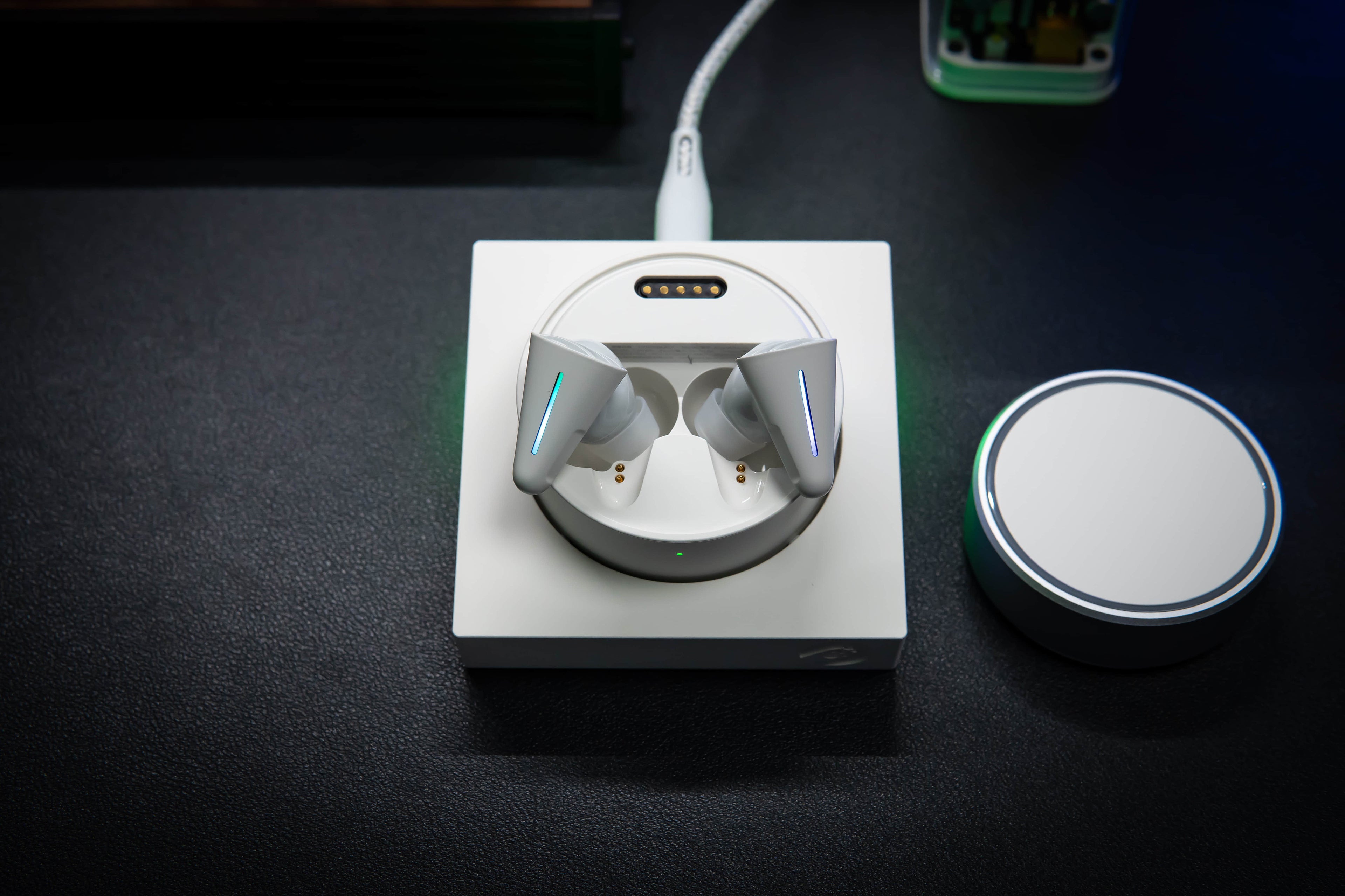 2. Remove the earbuds from the charging case, close the cover and connect CYBERBLADE to your PC using USB.