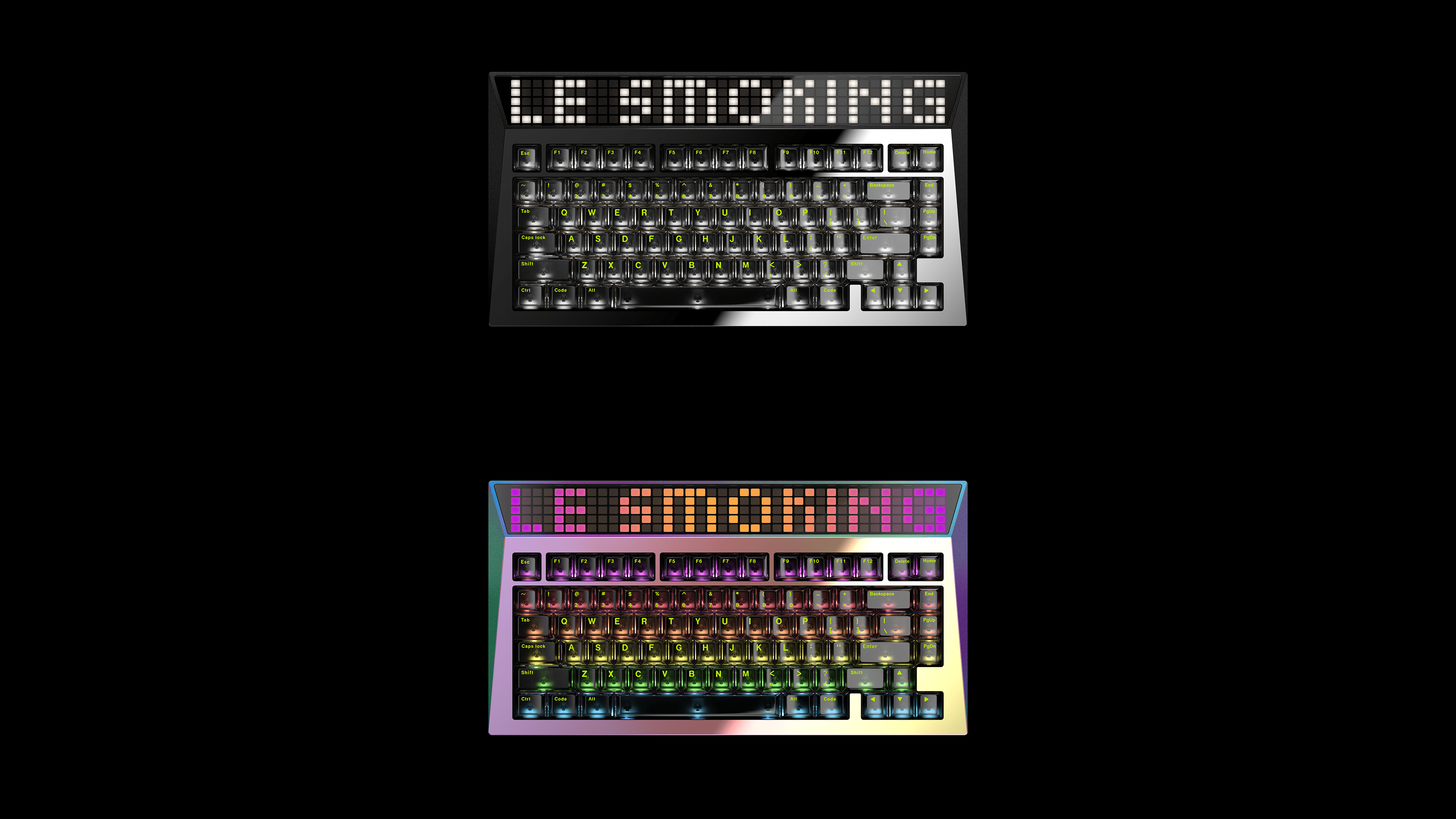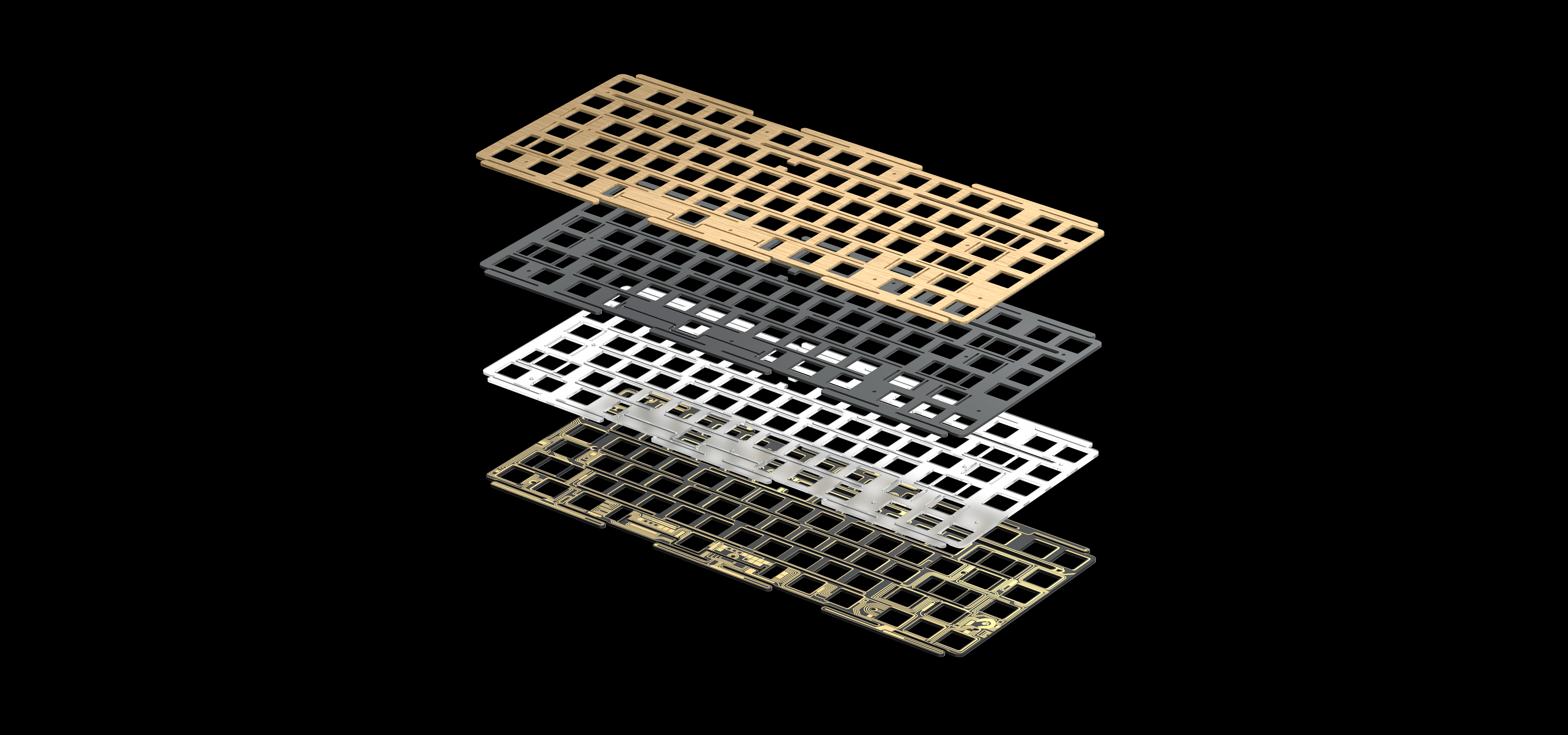 Le Smoking allows you to choose between four different plate materials, including Black Aluminum Plate (default), Brushed Brass, Golden Black FR-4 and 1.5mm Translucent PC.