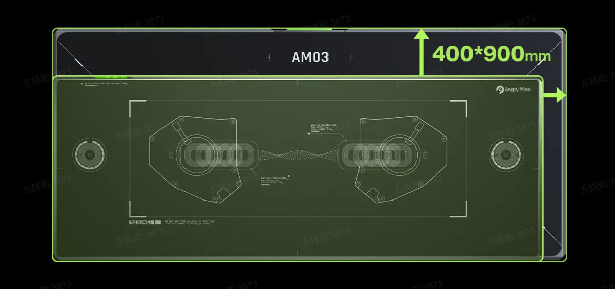 For even more flexibility, the right side of the mat is intentionally left clear, providing open space for mouse movement, especially designed to support the hot-swappable magnetic battery system of the AM INFINITY MOUSE.