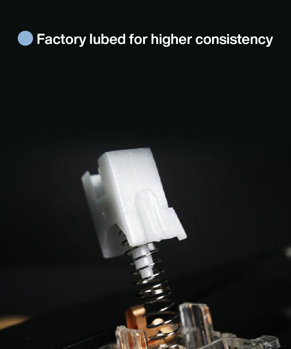- Mechanical lubrication ensures that each switch is lubed exactly to the same specification.