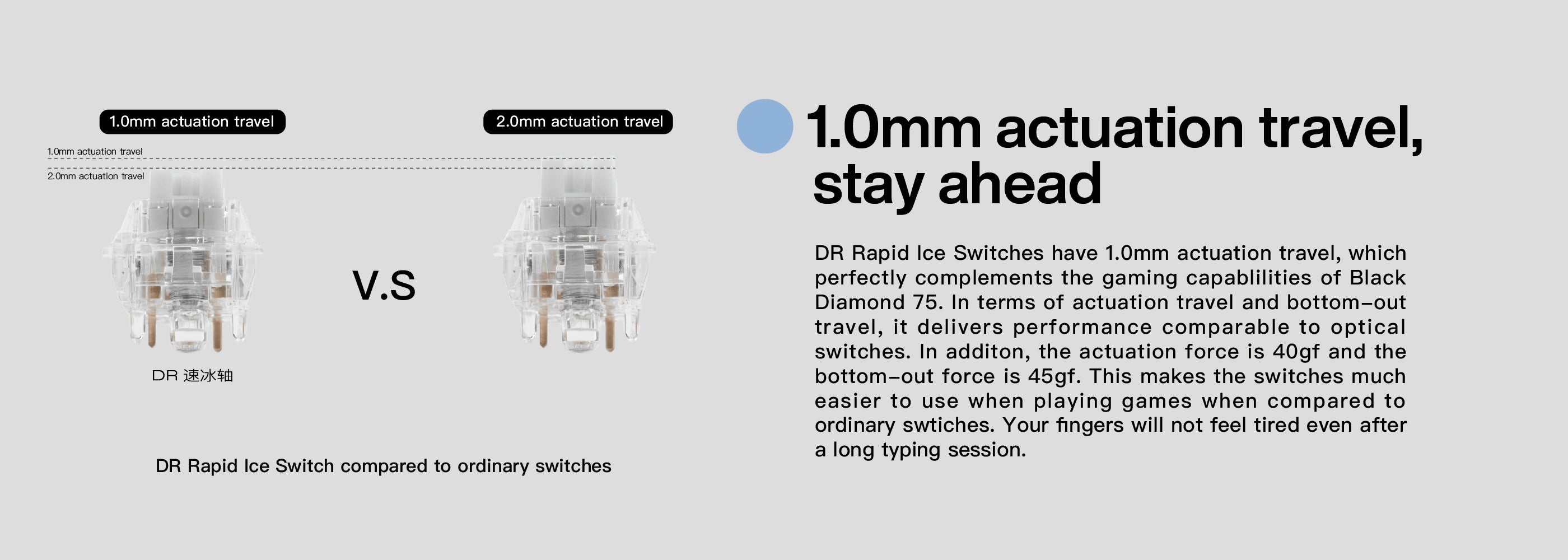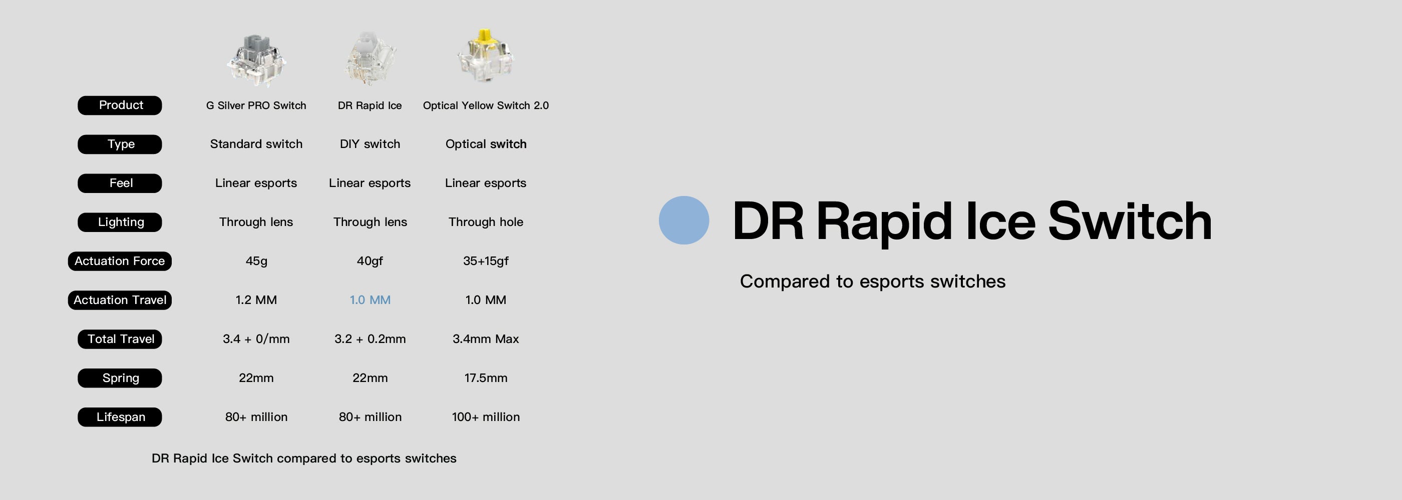 - To satisfy the needs of esports professionals, and to ensure we strike an excellent balance between typing feel and sound, DR Rapid Ice Switches use an extended switch stem.