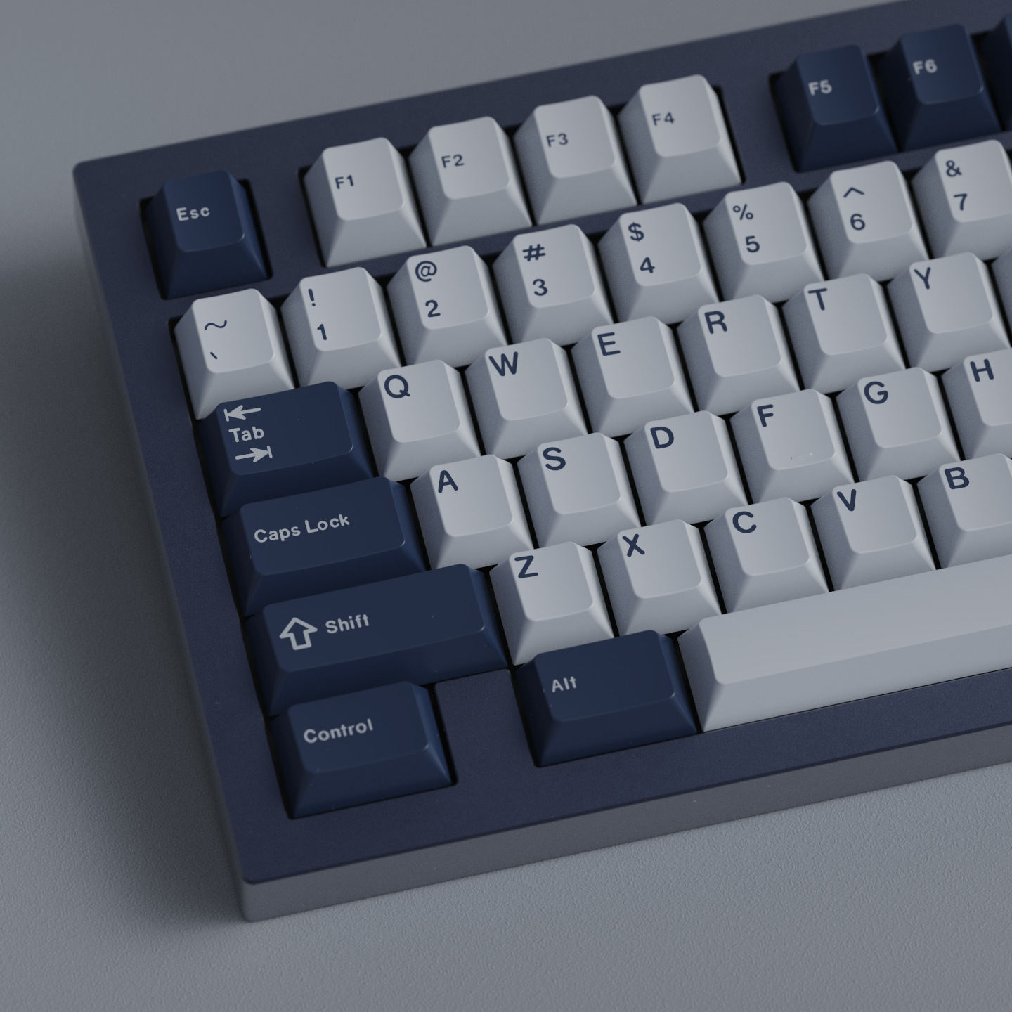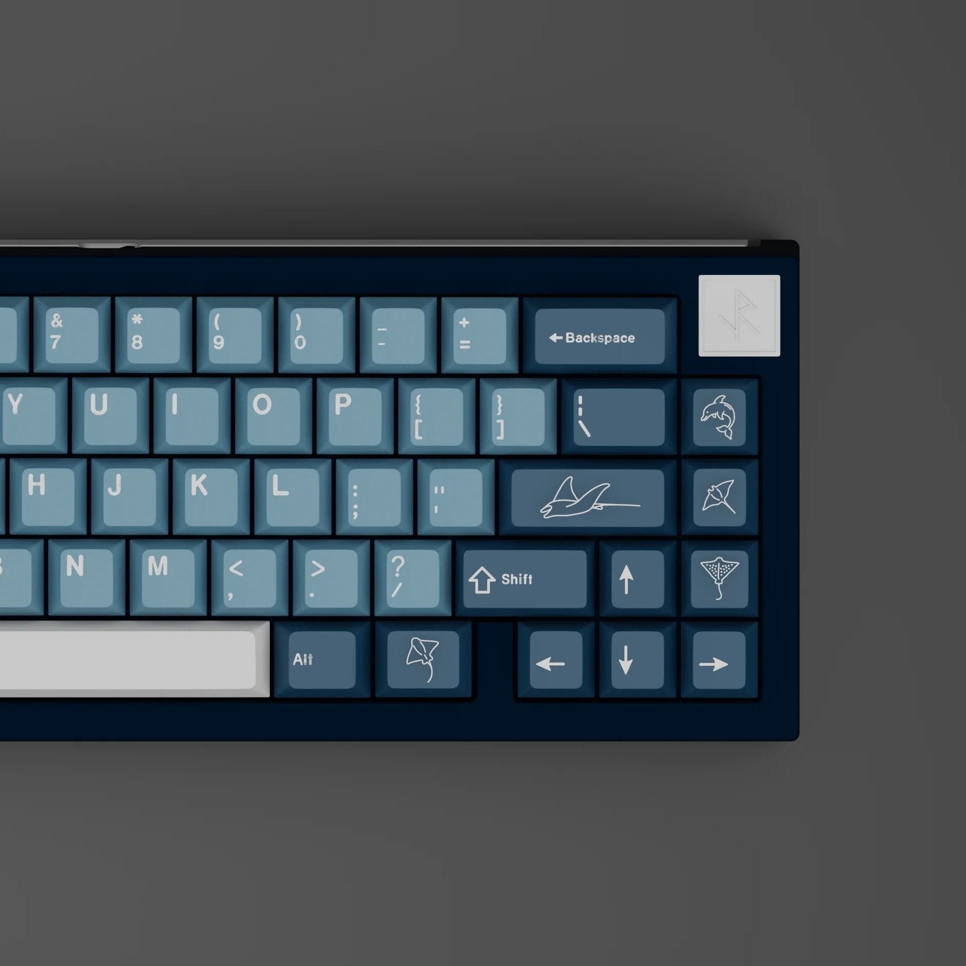 GMK Pacific is a keycap set inspired by US Naval Aviation in the Pacific Theatre of World War II. Using different shades of blues pair with a gray, GMK Pacific recreates the look of the waves, the sky, and the hull of the battle carriers.