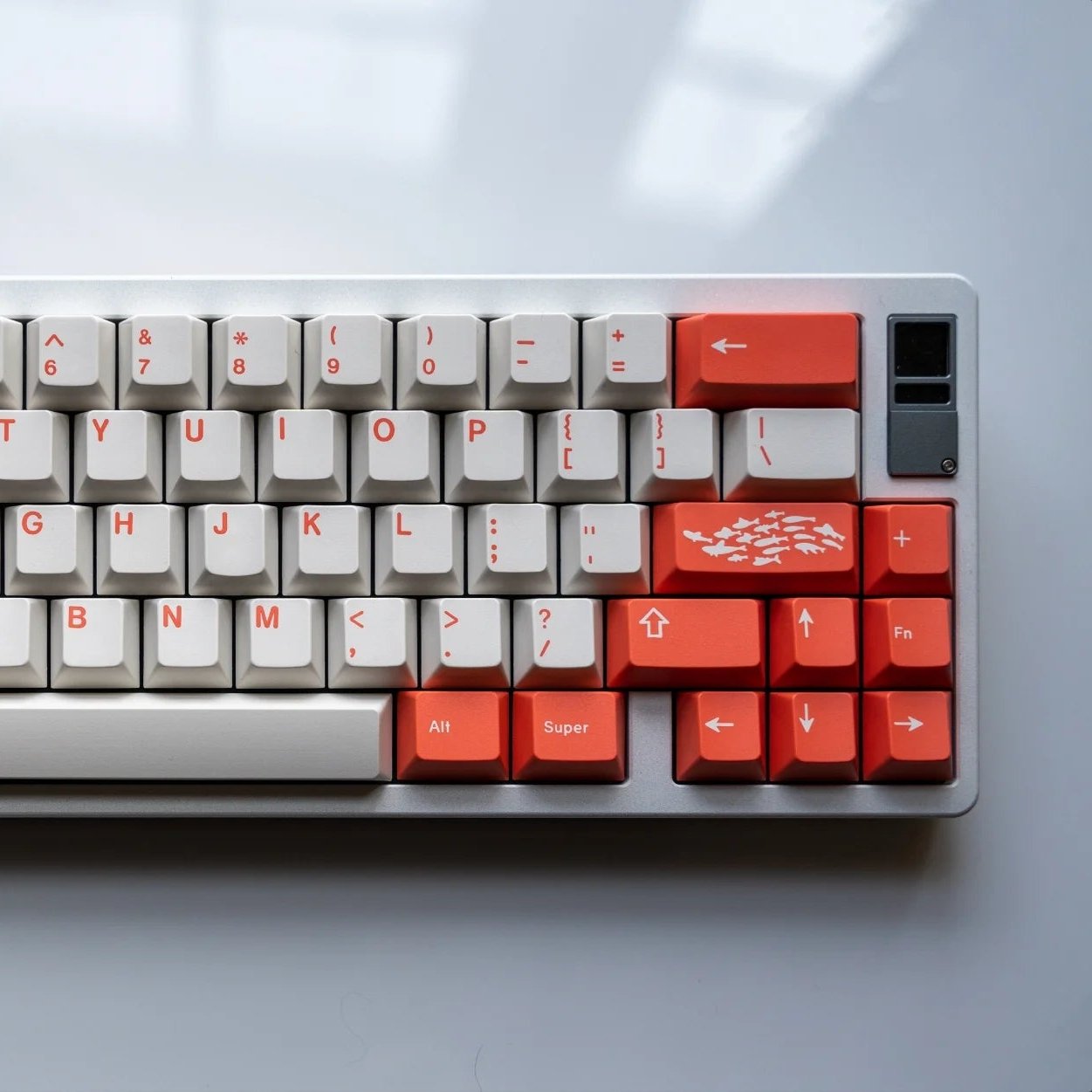 GMK Tako is super accessible with a white alpha, feature coloured mods and a complementary accent colour. Dark purple will be a great pairing with tons of boards.