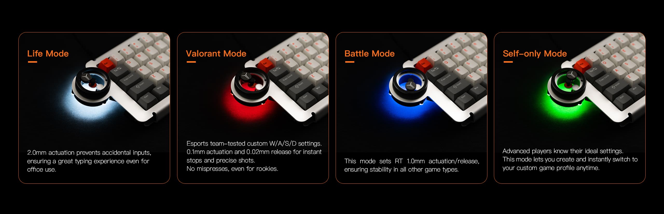 Life, Valorant, Battle, and Self-Only modes cater to four different usage scenarios.