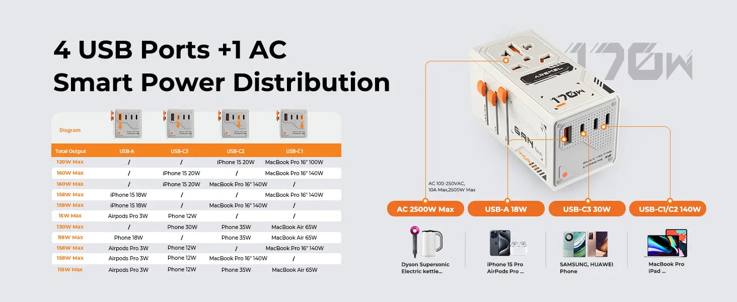 The ultimate all-in-one charging solution for travel, designed to meet your diverse charging needs.