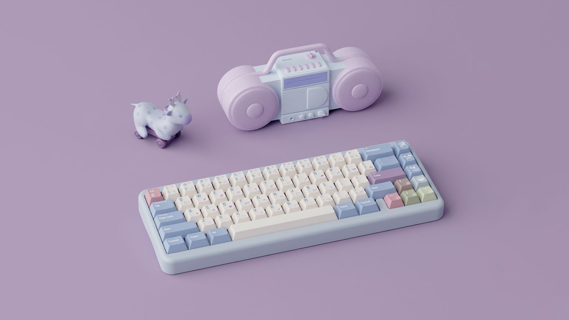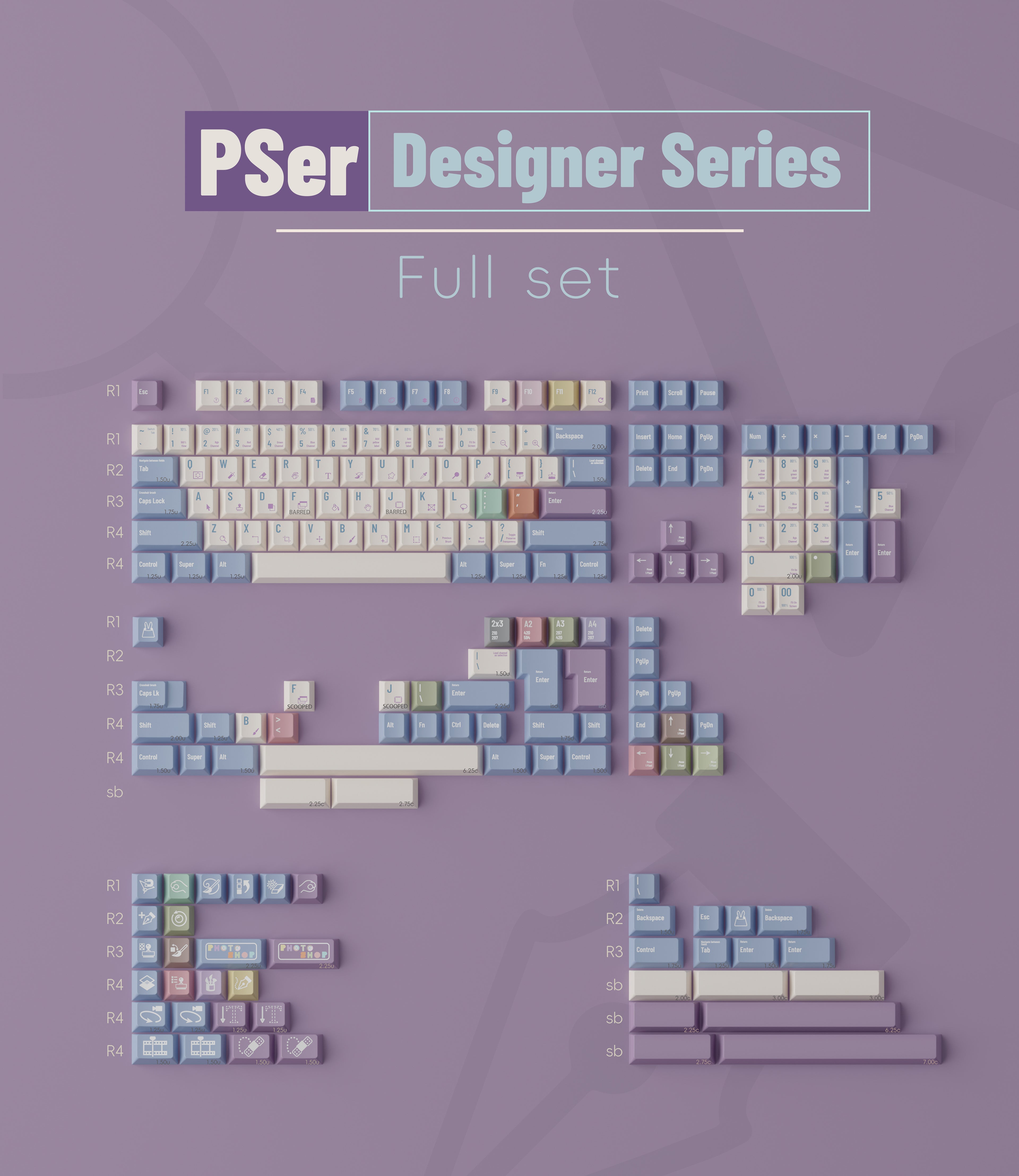 As the sister model of last year's AIer keycap set, this set continues on its retro and fresh style. If AIer represents the colors of autumn, then PSer represents early summer. The cool feeling brought by the cool blue and purple tones is come directly at you. The Alpha area also uses retro colors, with a warm milky white tones, which are good looking with a classic touch.